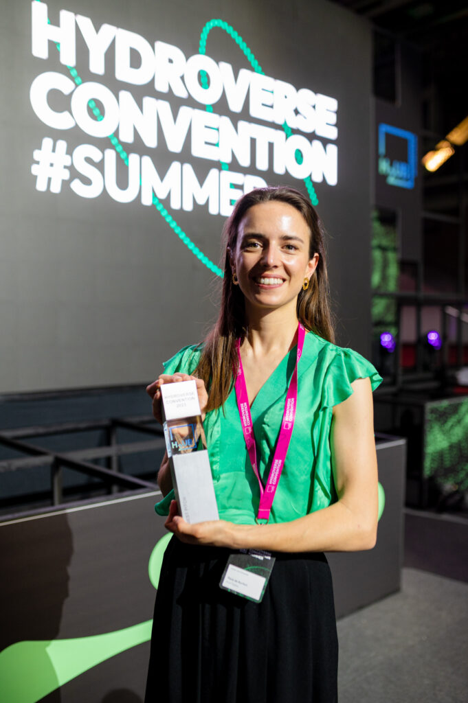 As the finale of the event, Managing Director Uwe Kerkmann, together with representatives of the H2UB shareholders OGE, RAG Stiftung, TÜV SÜD and DLR, presented the “HYDROVERSE CONVENTION Award” to the best pitch of the day. The winner, Flore de Durfort from Point Twelve, convinced the six-member jury with her software that enables producers to easily trace the origin of hydrogen, quantify carbon emissions and obtain government-approved certificates for this. The jury assessed the technology merit and feasibility, impact on the H2 economy, team quality as well as presentation quality.