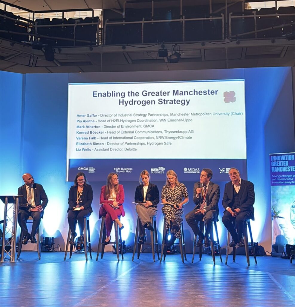 One conference day was fully dedicated to hydrogen. Our colleague Robin Ibing joined a panel on future collaboration between the Ruhr Valley and Greater Manchester and contributed to a breakout session on the skills needed to build the hydrogen value chain.