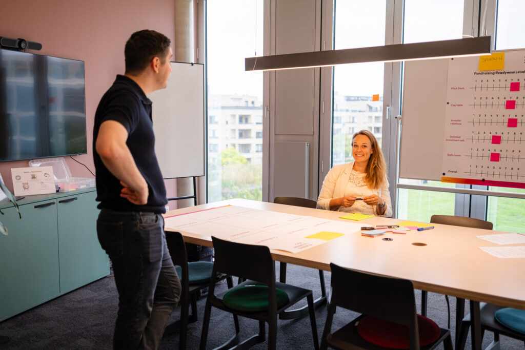 To help our start-ups grow together as a group and experience the power of peer-learning, we hold a kick-off, interim meeting and investor pitch presentations on site in Essen. Our goal is to provide start-ups with the guidance and support they need to take their business to the next level – and our program is designed to deliver just that.